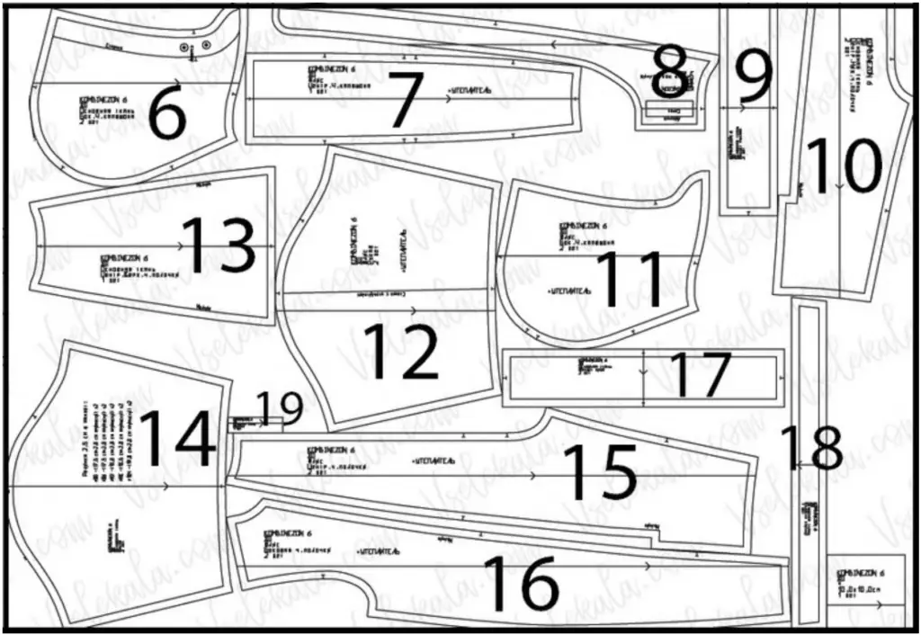 15 – center front, lining, insulation, number of pieces – 2