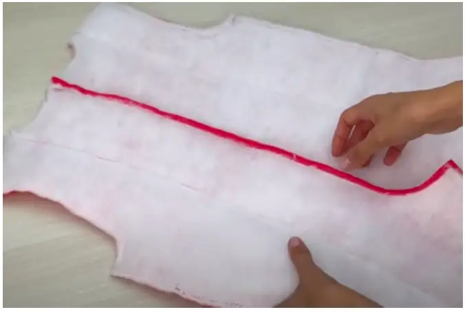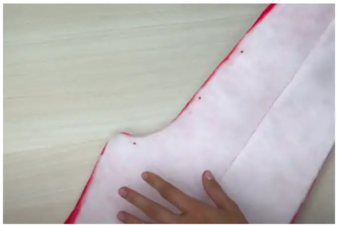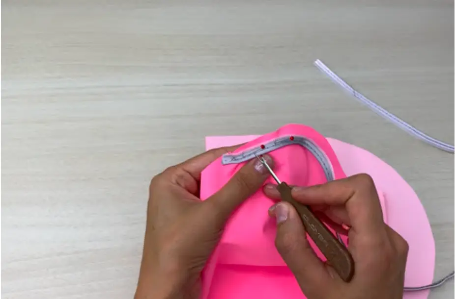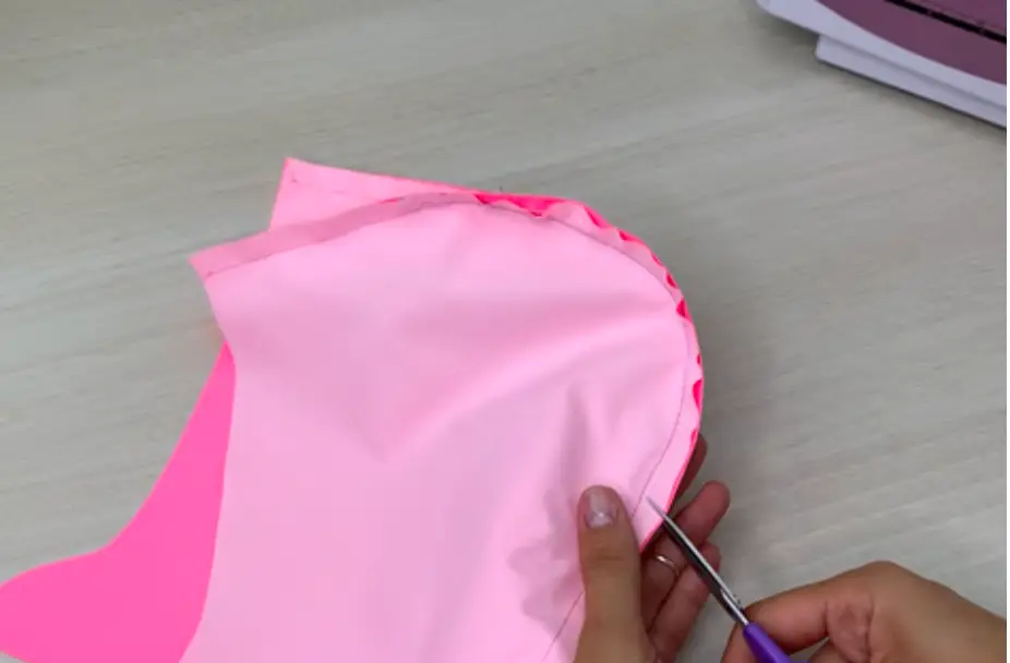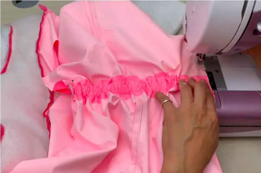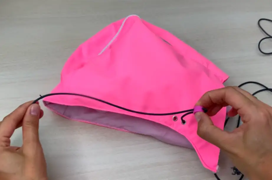 Turn the garment to the right side. Make a finishing stitch at a distance of 2.5-3 cm / 0.98-1.18 in from the edge on the hood. It will serve as a casing for the elastic cord.