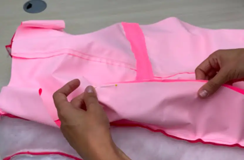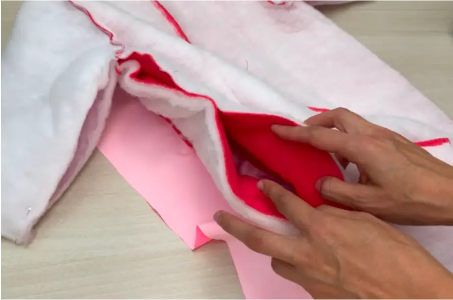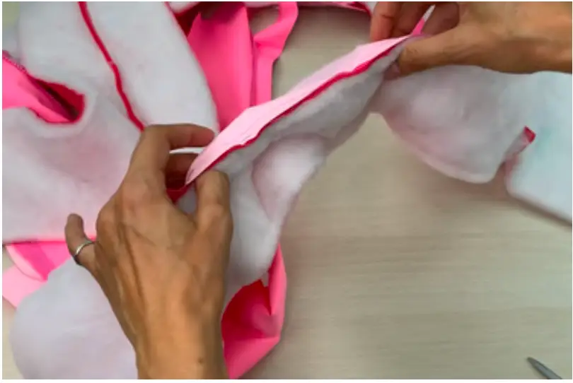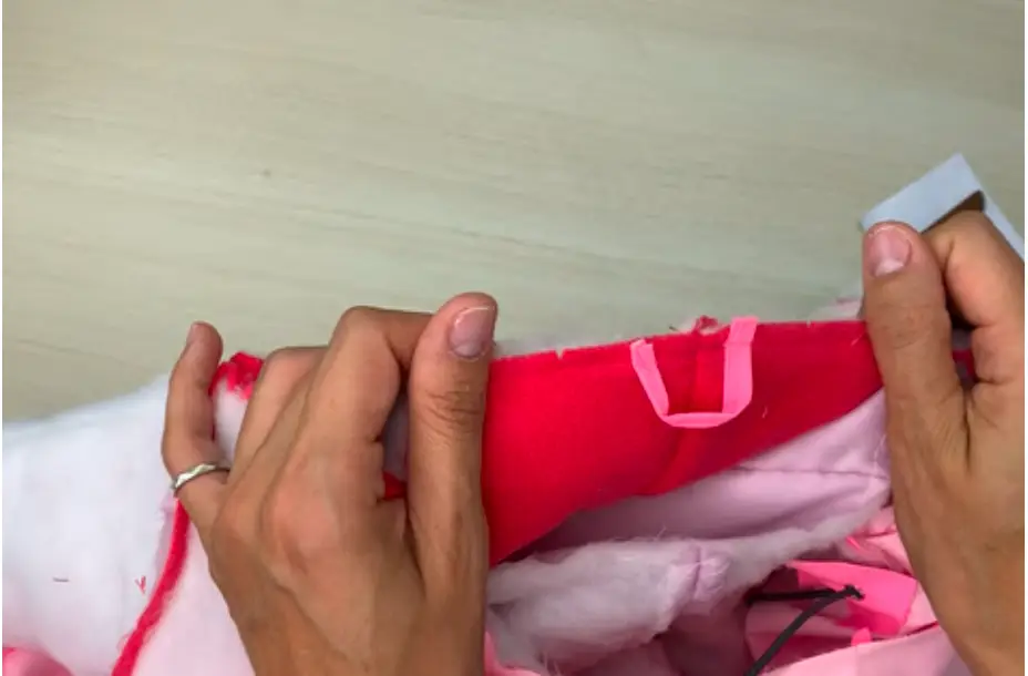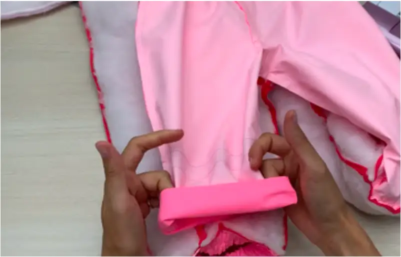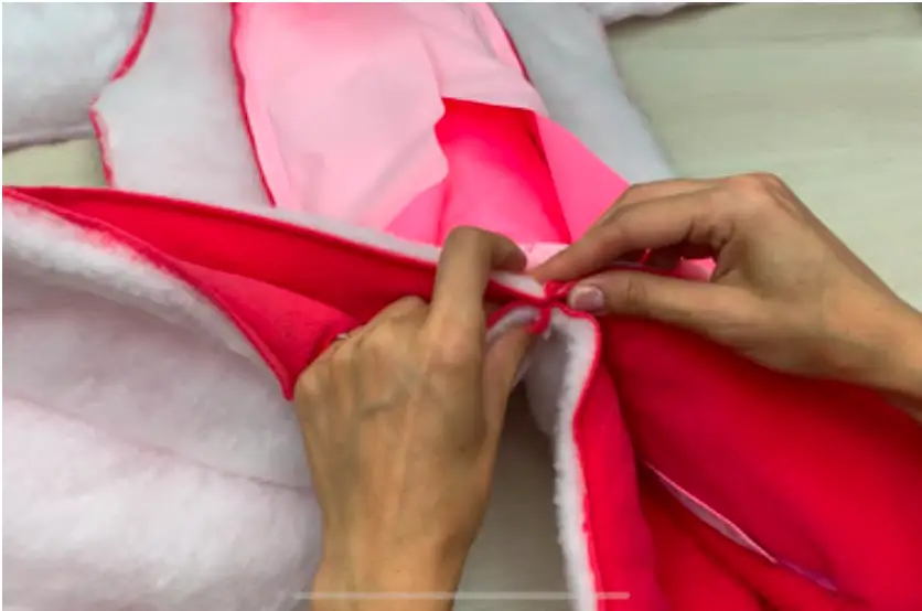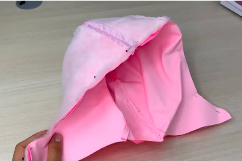 Use hand stitching to attach lining and garment at the shoulder seams, and attach the internal and external hoods at the neck line.