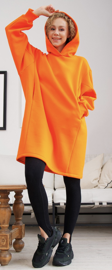 Also, for sewing a dress, you will need: Threads; Interfacing tape – 0,5 м (19.7″); Jersey needle; cord in the hood – 1 m (39.4″), grommets – 2 pcs.