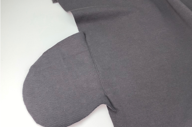 Insert the Cuff into the Sleeve with the right sides together. Stretch the Cuff a little bit while sewing in. Press allowances to the Sleeve.