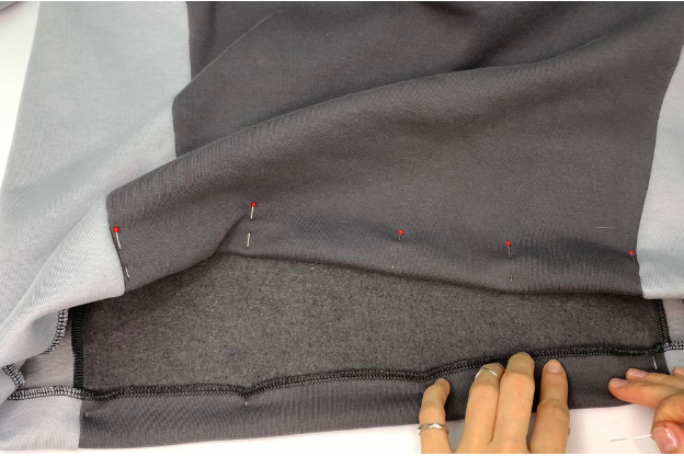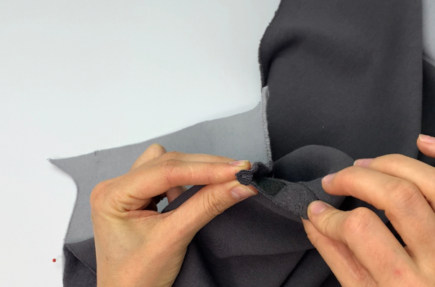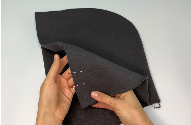 Pin the Hood details together with the right sides. Stitch.