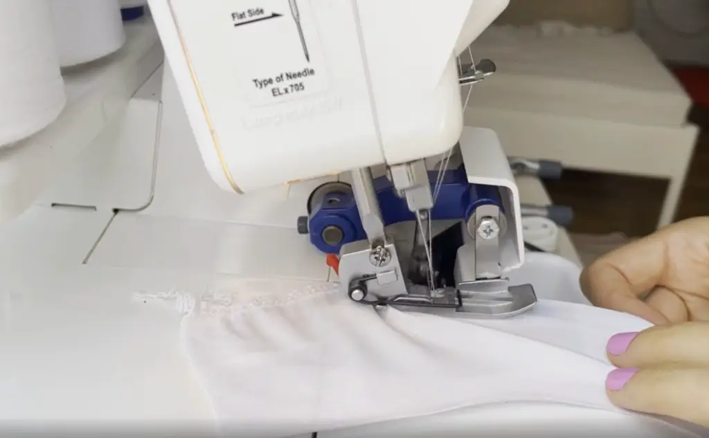 Fold the elastic inward and pin. Sew in place using twin needle.