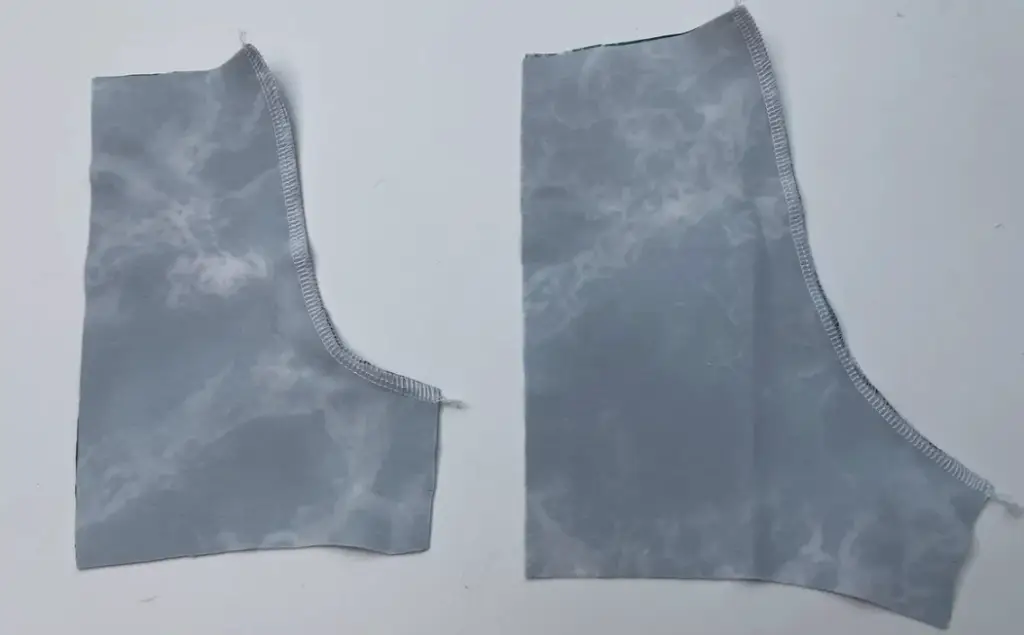 Serge the outer curved edge of the gusset details. Press.