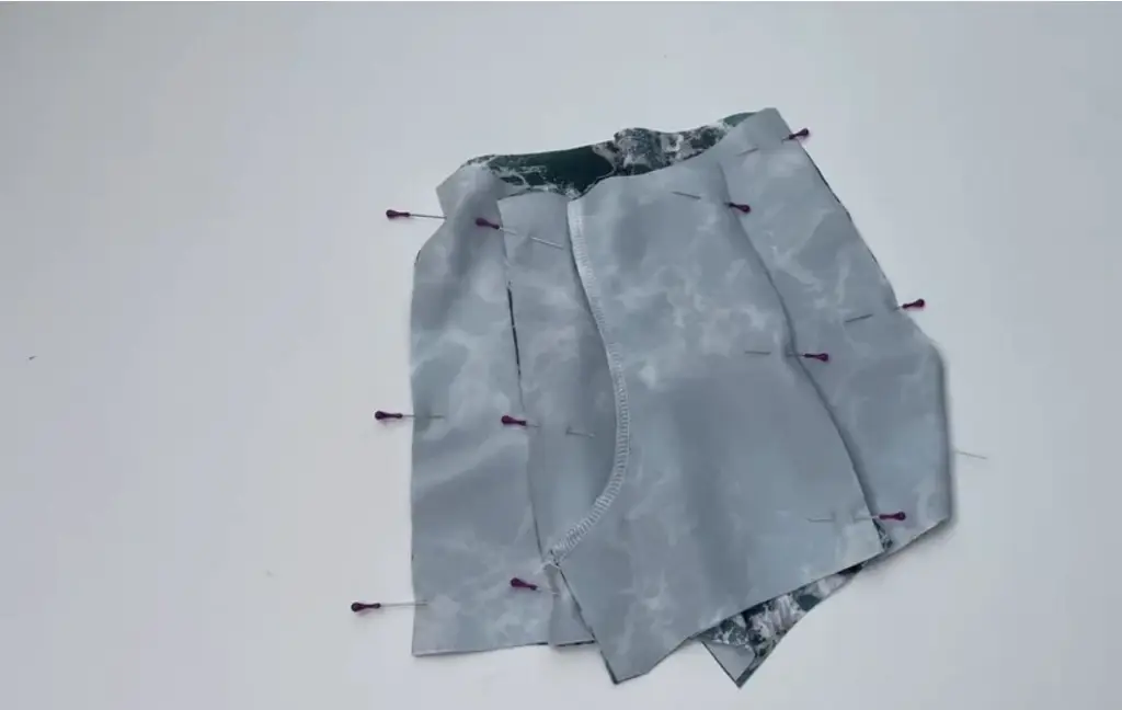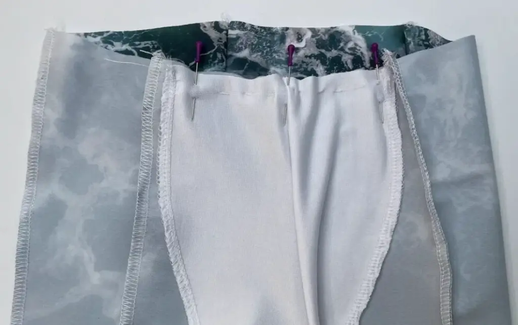 Pin the front and back together along the inseam with the right sides.