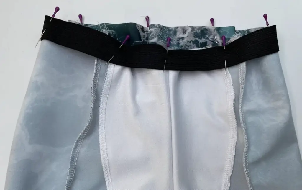 Pin the elastic to the upper hem of the garment (to the wrong side).
