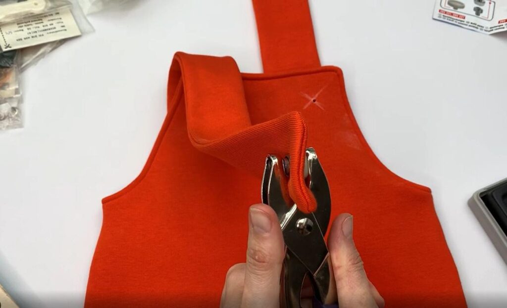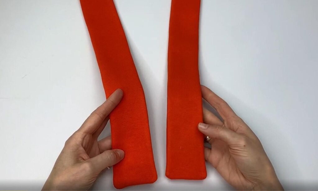 Fold the strap in half with the right side and stitch its long and 1 short edges. Trim corners. Turn to the right side and Press.