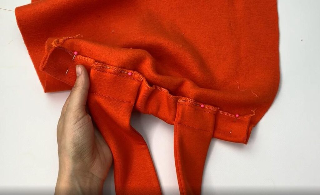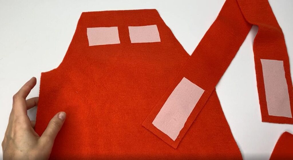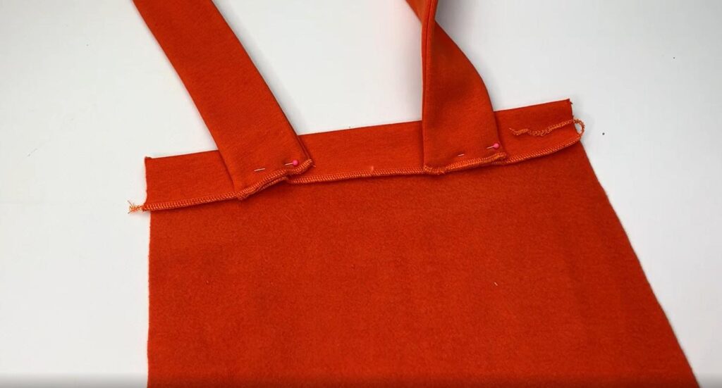 Pin the straps to the upper edge and sew in place.