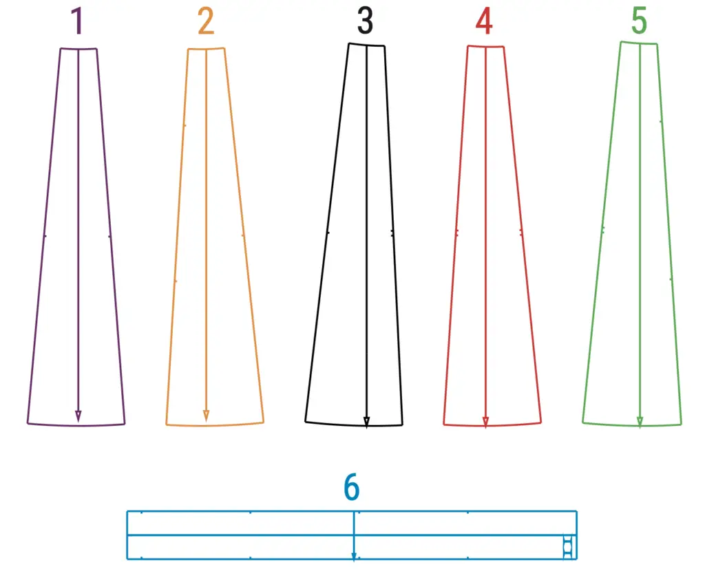 2. Sew all the panels of the front skirt, overlock and press the allowances to the center.