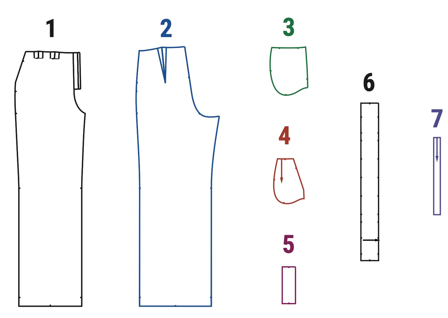 Pattern pieces already include 1 cm (3/8”) seam allowances. Important! Adjust the length of the trousers according to your height.