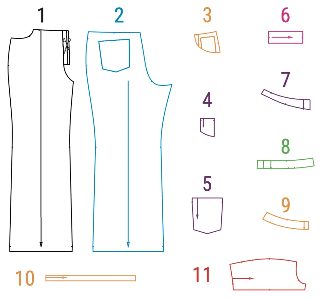 Pattern pieces already include 1 cm (3/8”) seam allowances. Adjust the length of the jeans according to your height.