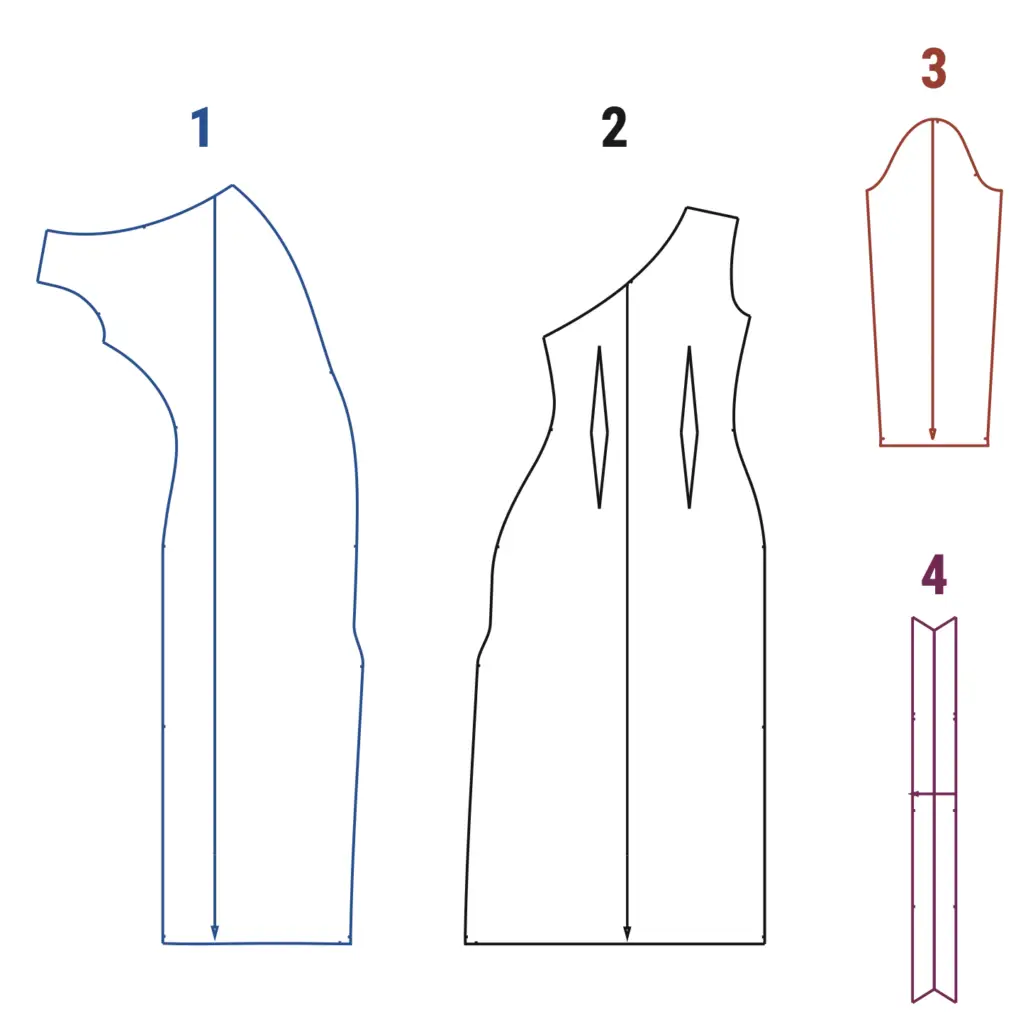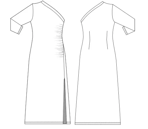 Attention! As the dress is asymmetric, the patterns contain the mark “RIGHT SIDE”. The left side seam of this dress is designed in the front, beginning from the waist and ending in the bottom.