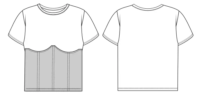 17. Press seams along the bottom of the T-shirt. Overlock and stitch the hem with a double needle or on a flatlock machine.