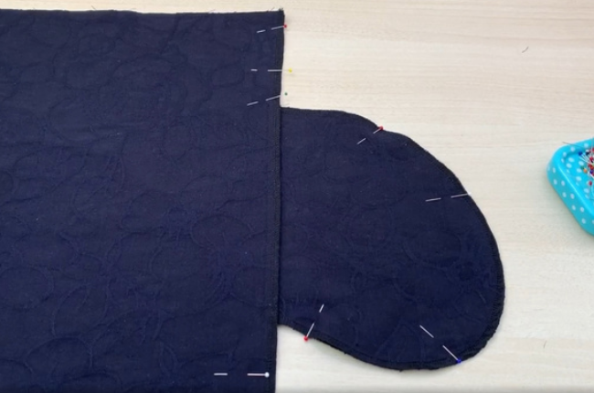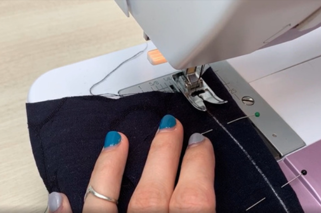 Pin the front and back side edges right sides together and sew a straight stitch on a sewing machine. Press the allowances open.