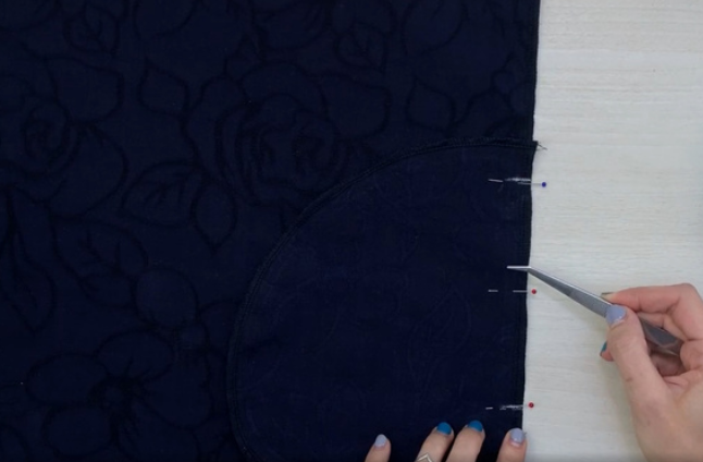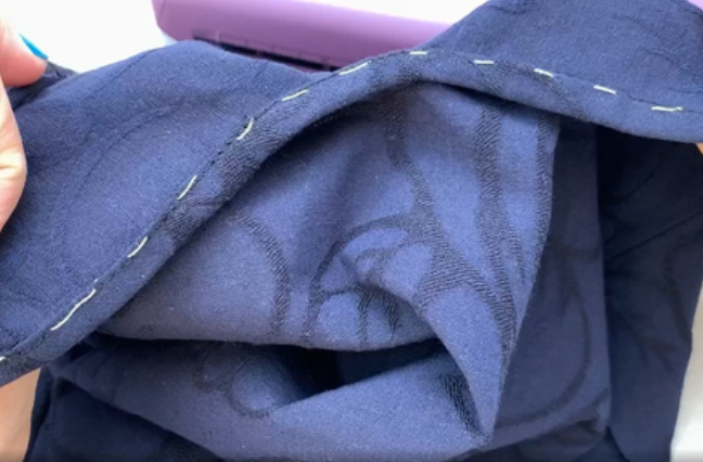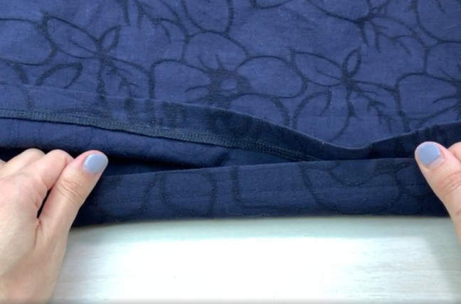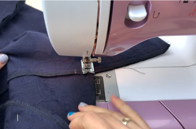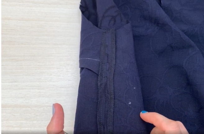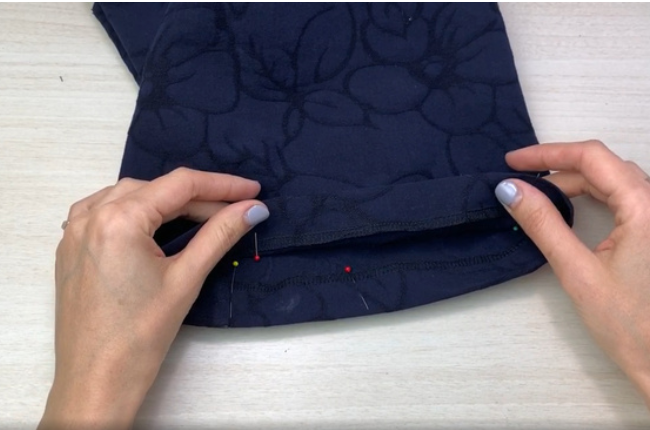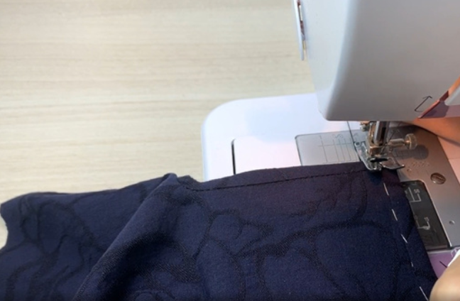 Overstitch the bottom edge and fold it over to the allowance distance. Stitch it. Press the allowances.