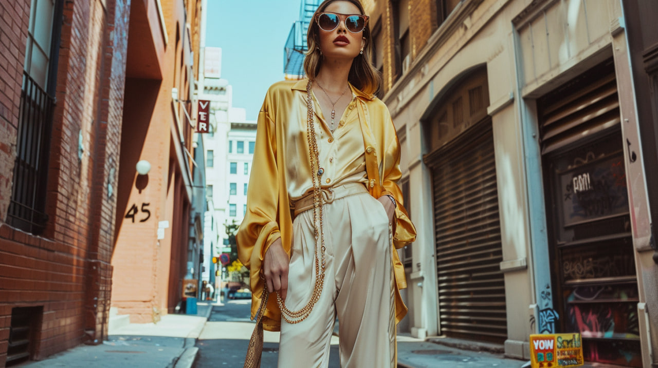 Silk and satin pajama sets have become a go-to look for effortless elegance. Styled with heels and statement accessories, these sets offer a sophisticated yet relaxed aesthetic.