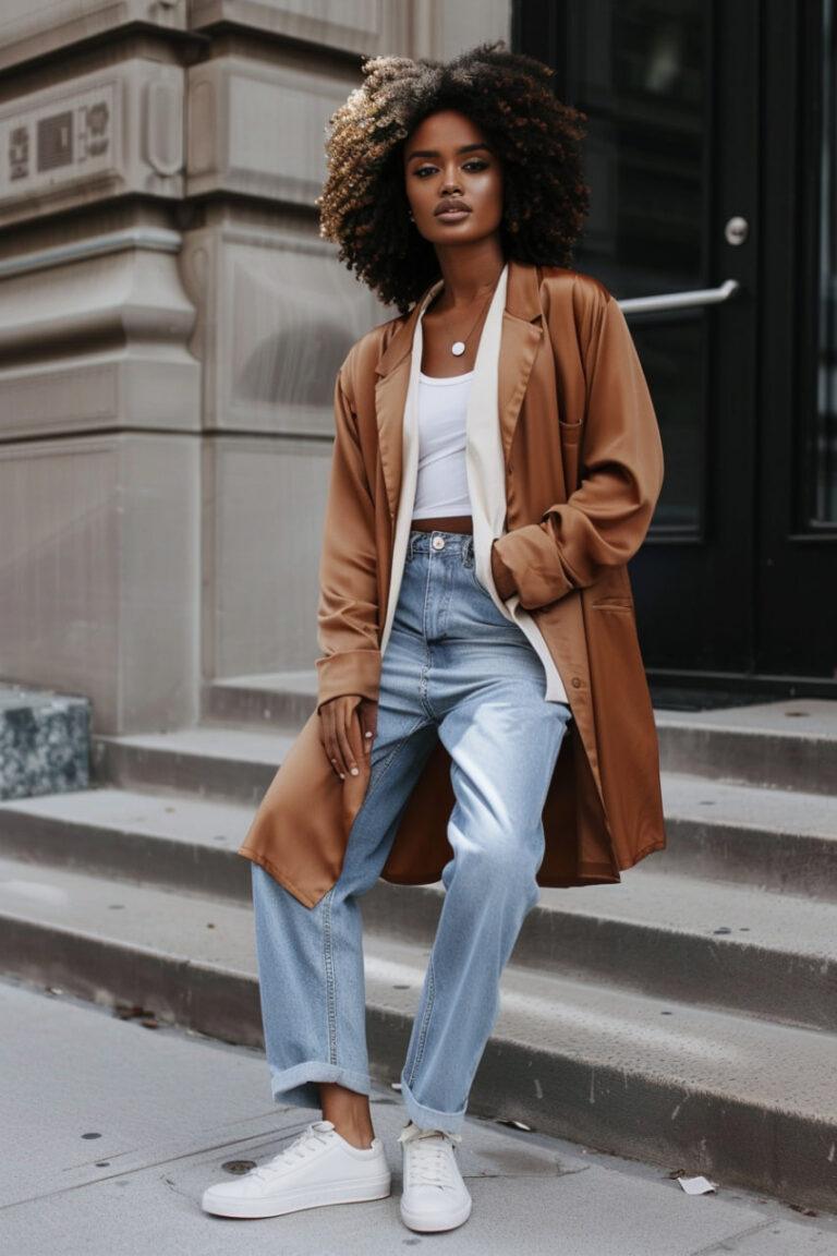 • Accessorize Thoughtfully – Statement belts, sleek handbags, and layered jewelry help define the outfit.