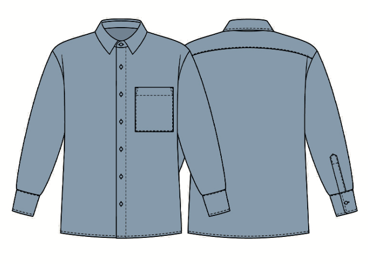 Pattern pieces already include 1 cm (3,8”) seam allowances for all edges except collar, collar stand, cuff, hem allowance. Garment collar, collar stand, cuff allowance is 0,7 cm (0,27”). Garment hem allowance is 1,5 cm (0,59”).