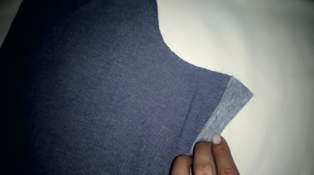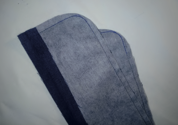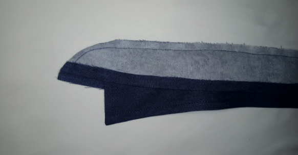 Pin the collar details together with the right sides and stitch at 7 mm from the raw edge.
