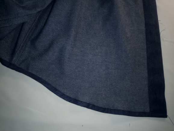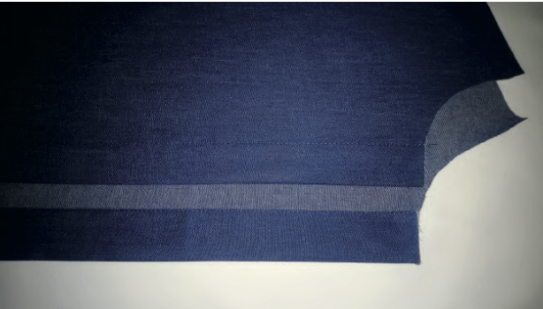 Fold the bottom hem of the garment twice and press it. Topstitch it.