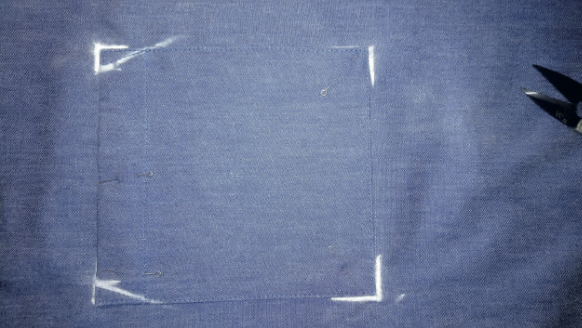 Pin the pocket to the front panel and chalk the stitching lines on the patch pocket. Sew in place.