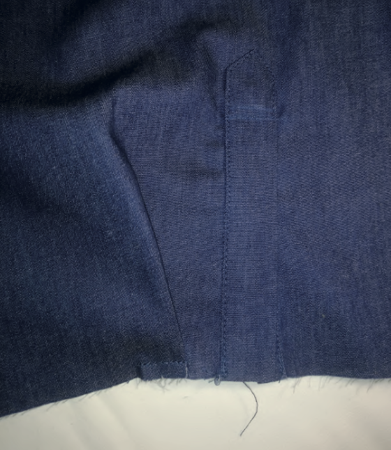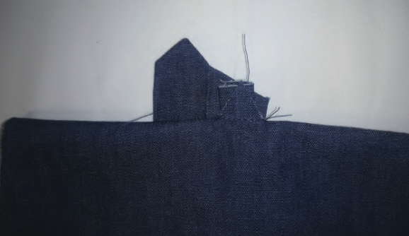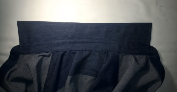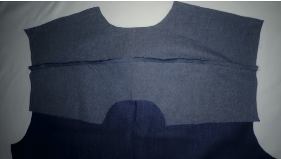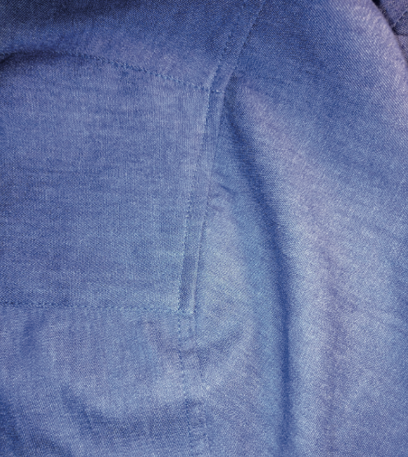 Bend the bottom yoke to the back detail and understitch it at 1 mm (0,04″) from the seam.