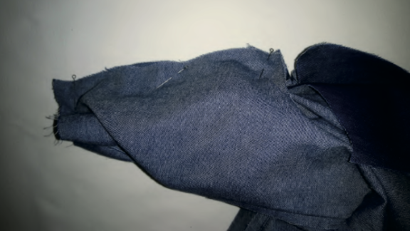Fold placket overlap to the right side of the sleeve. Form it and pin.