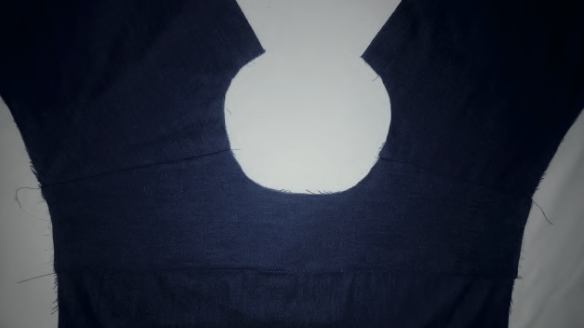 Pin the inner collar stand into the neckline with the right sides together. Sew in place. Press seam allowances to the collar stand.