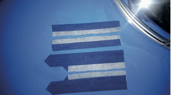 Iron the facing tape to the front detail (where the buttonholes are to be) along the center edge. Fold the center edge twice and press.