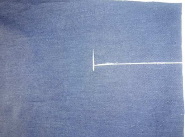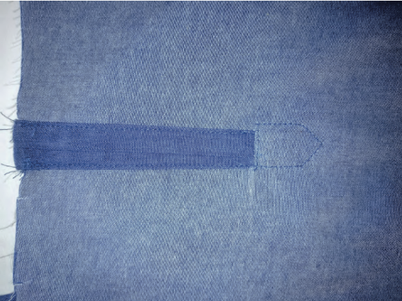 Draw a placket opening on sleeve’s wrong side. Pin the underlap and overlap to the line. Sew in place.