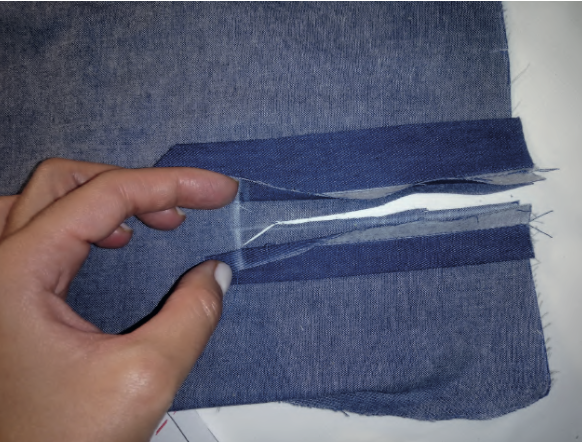 SLEEVE. Iron the interfacing to the cuff placket overlap and underlap. Press seam allowances on overlap and underlap.