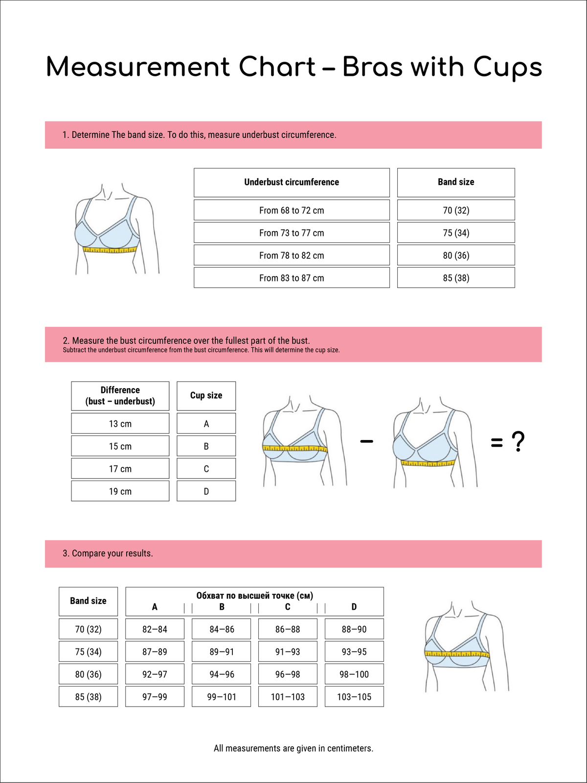 The set contains 3 formats of sewing patterns in pdf: A4 (210 x 297 mm), Letter (215,9 x 279,4 mm) and Plotter (A0 or 841 x 1189 мм), also a sewing guide and a bra sewing instruction.