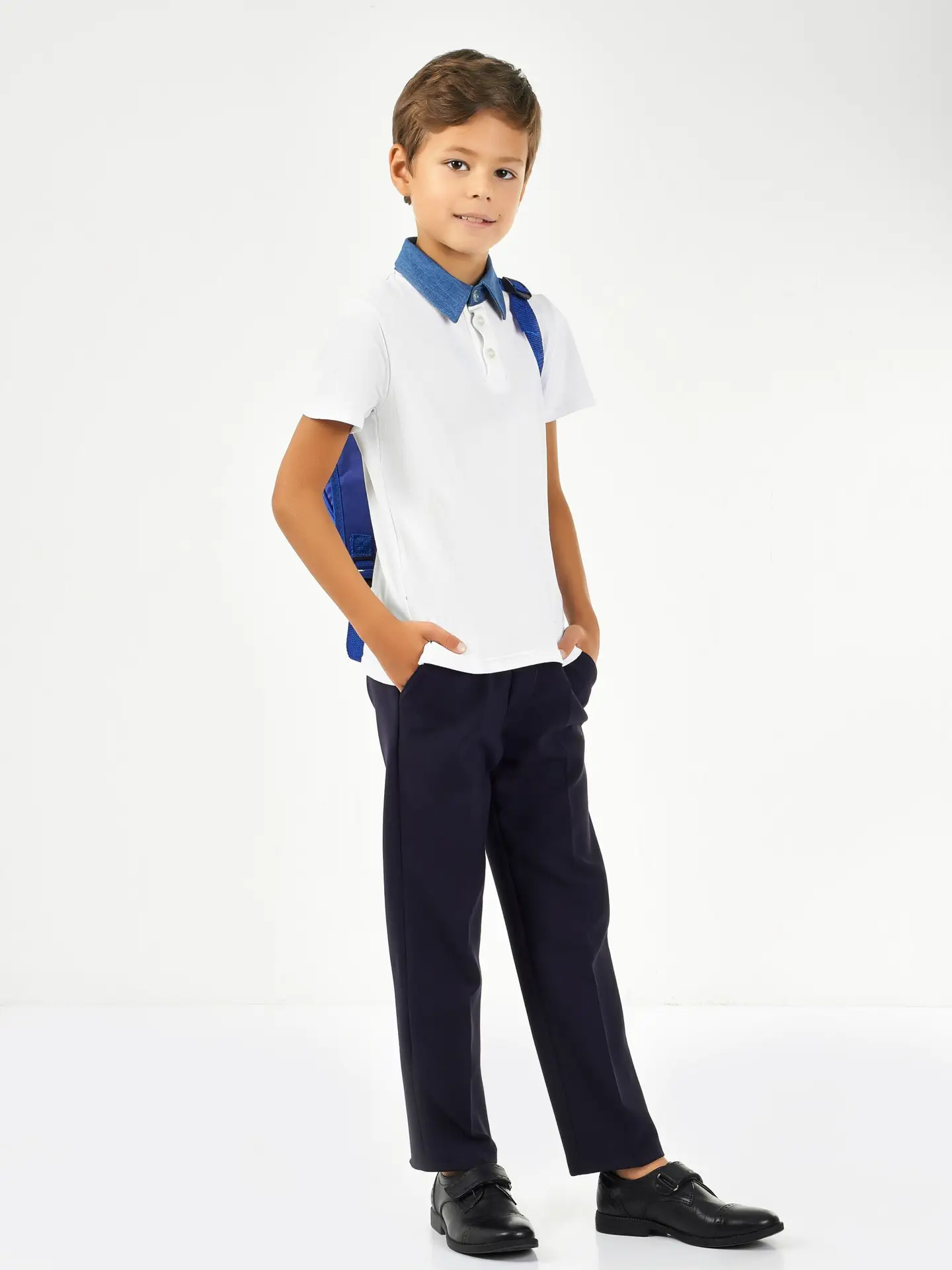 The waistband is elastic, because children at this age are growing rapidly, and the waistband is suitable for different types of children’s figures: increasing or decreasing the waist size will not affect comfort at all. The product is complemented by pockets with a cut-off side and an oblique entrance.