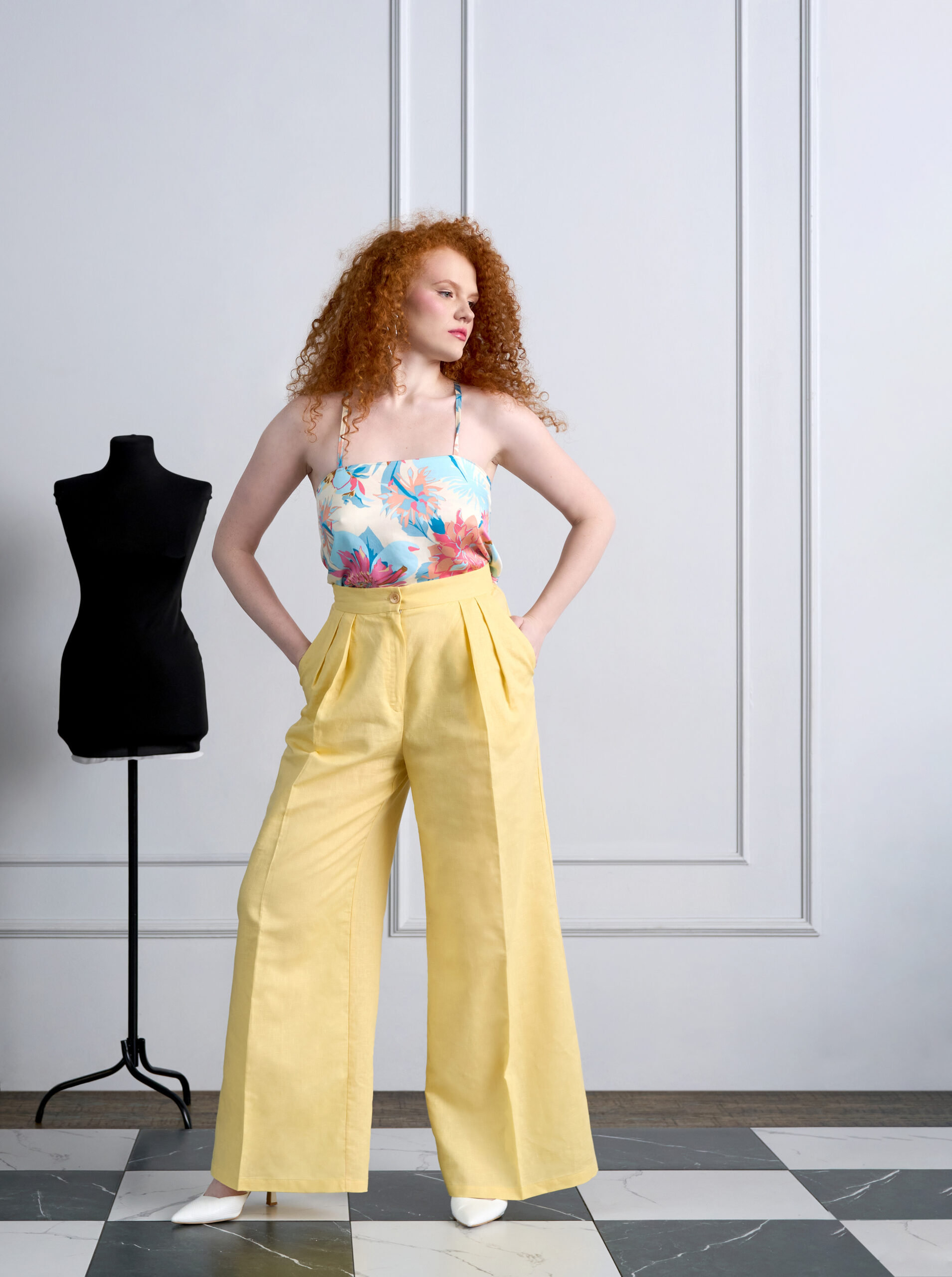 The set contains 3 formats of sewing patterns in pdf: A4 (210 x 297 mm), Letter (215,9 x 279,4 mm) and Plotter (A0 or 841 x 1189 мм), also a sewing guide and a scarf top sewing instruction.