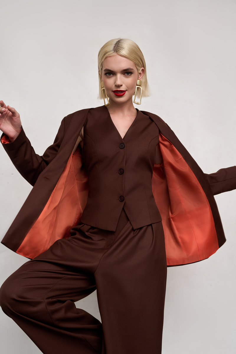 For sewing this jacket, we recommend using suit fabrics of medium density.