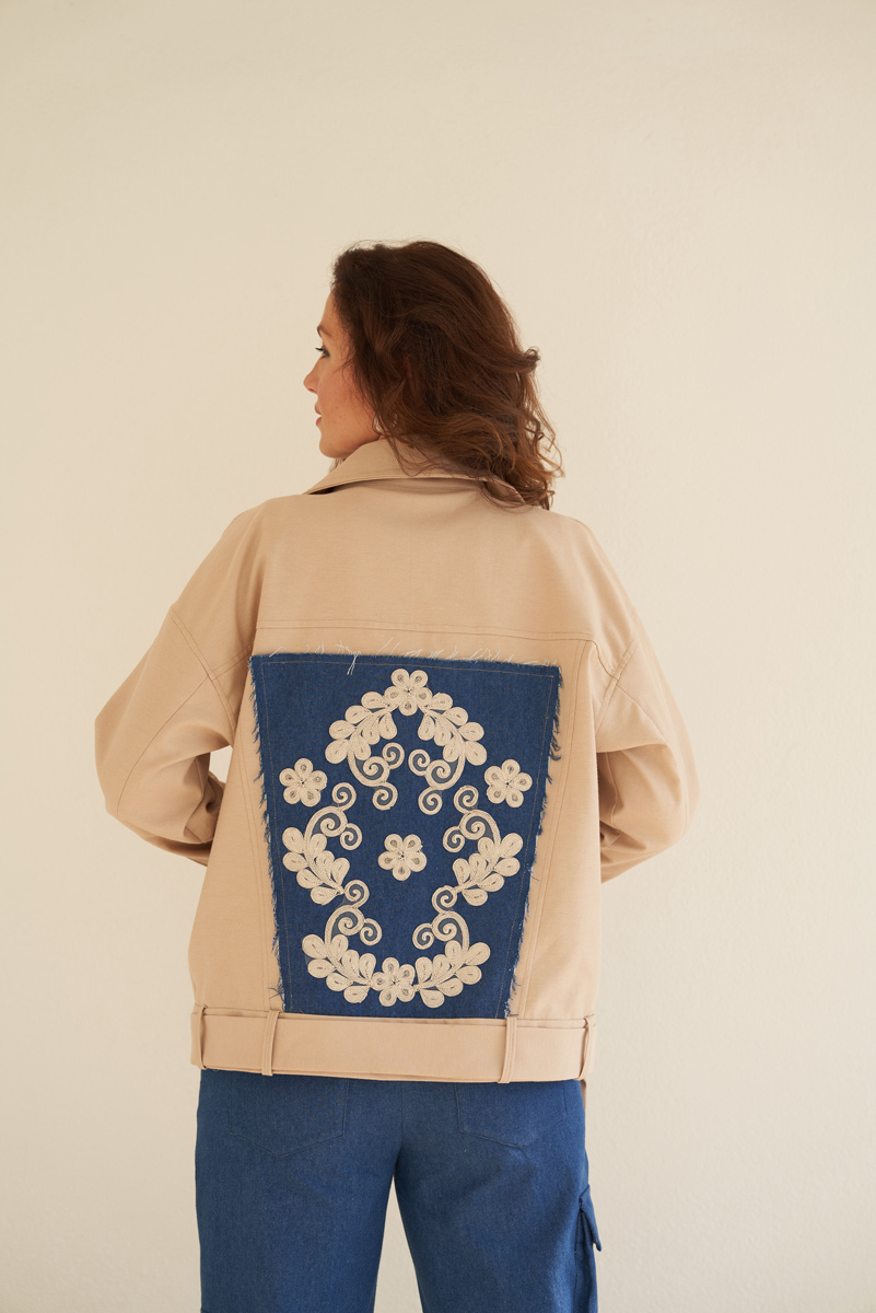 For sewing the Soho jacket, we recommend using denim fabric. Heavy cotton fabrics are also well-suited for this design. These materials will provide the necessary structure and durability for the jacket.