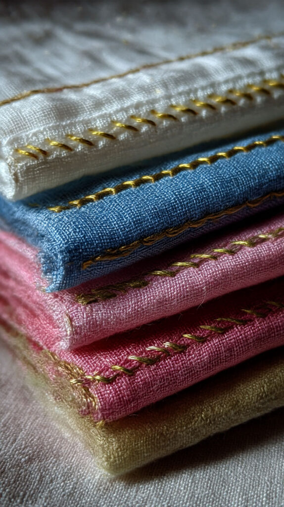 Elegant and nearly invisible, French seams enclose the raw edges inside the seam itself. They’re perfect for lightweight and sheer fabrics like chiffon, voile, and silk. To create a French seam, begin by sewing the fabric wrong sides together with a narrow seam allowance (typically ¼ inch). Trim the seam close to the stitching, then fold the fabric right sides together and sew another seam, this time ⅜ inch wide. The result is a completely enclosed, fray-free finish that’s soft against the skin and gives garments a couture touch.