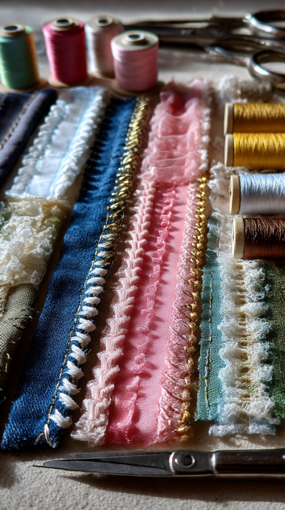 For those who love detail, the Hong Kong finish is a stunning way to bind seams. It involves wrapping the raw edge in bias tape and stitching it down — ideal for unlined jackets or garments where interior craftsmanship is on full display.