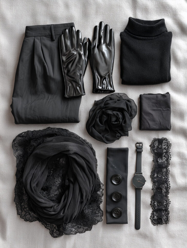 ✔ Designers often experiment with texture—matte cotton, glossy patent leather, sheer tulle, or soft velvet—to add dimension to monochrome black outfits.