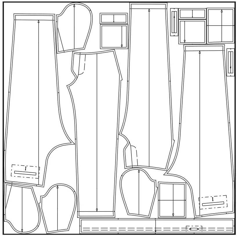 22. Mark the topstitching lines on the pattern, simulating a fly, and make them using the sewing machine.