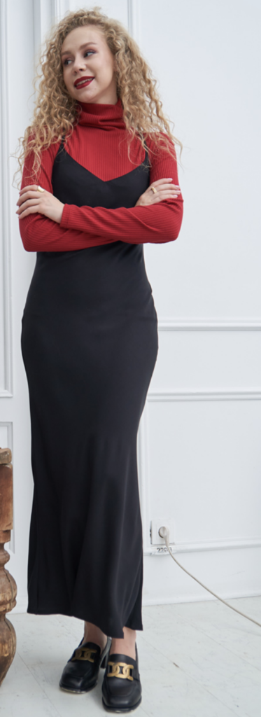 For sewing a turtleneck, we recommend using light weight ribbed jersey knit fabric. Other medium stretch knitwear is also suitable.