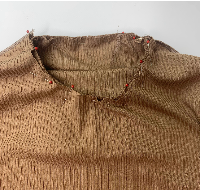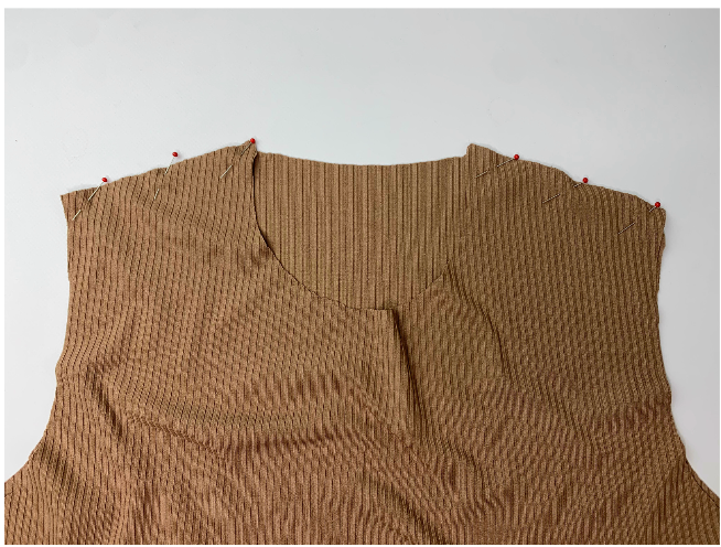 Pin the Front and Back together with the right sides along the shoulder edge.