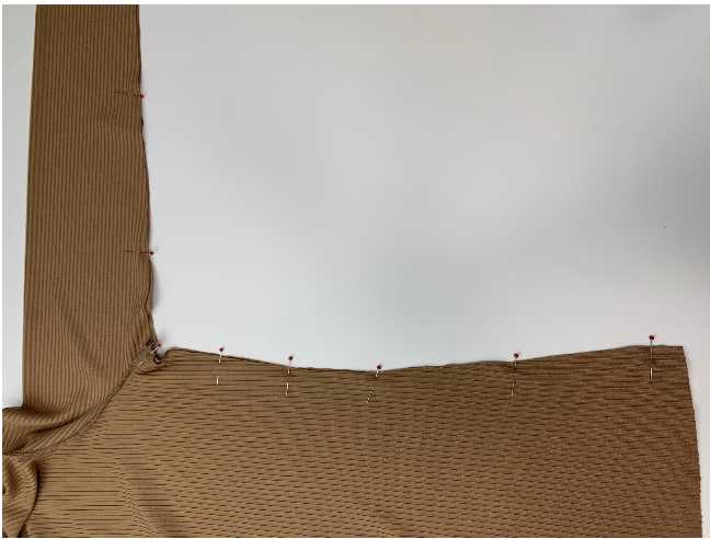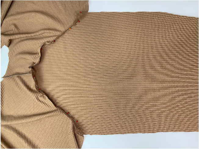 Fold the Sleeve in half, pin the side edges of the Sleeve, Front and Back with the right sides together.