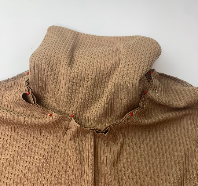 Fold the Turtleneck collar in half with the right sides together, pin and stitch along the short edge.