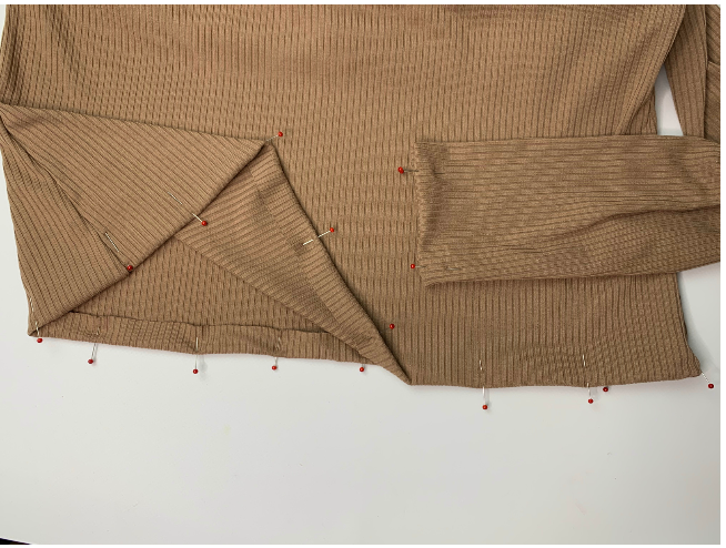 Fold the hem of the sleeves and the bottom of the Turtleneck.